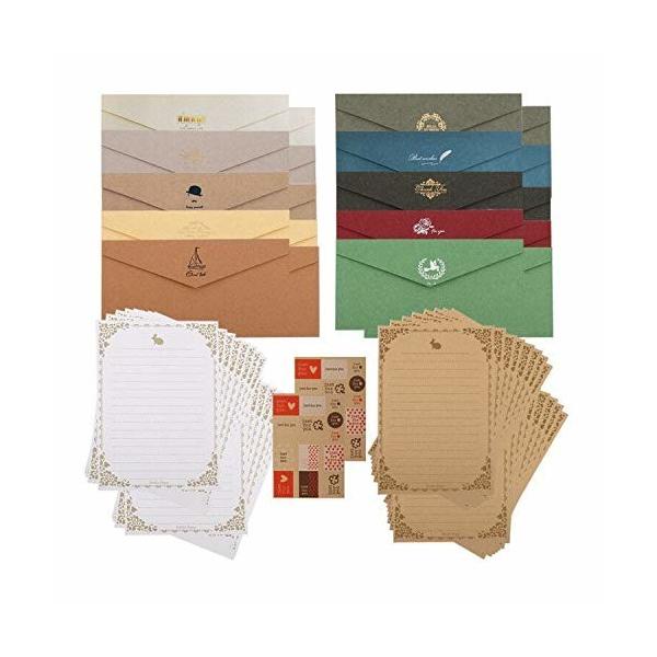 Amazon レターセット 便箋 手紙 封筒 おしゃれ で かわいい 手紙セット メッセージカード クラフト用紙 招待状 デザインペーパー アンティーク 10色の封筒 26枚の便箋 Zerohachi レターセット 文房具 オフィス用品